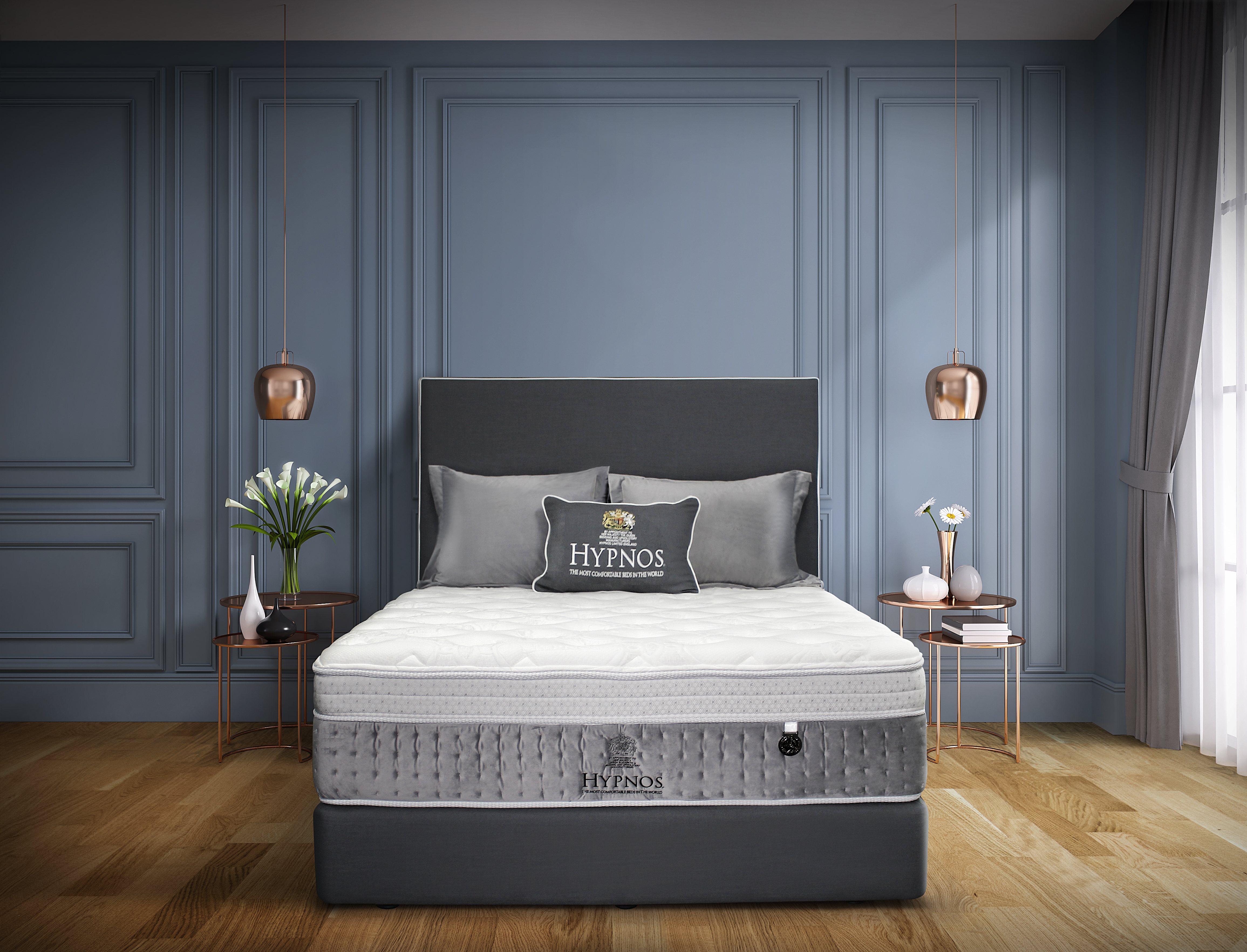 Top panel with Virase finish which helps fight the spread of viral infections, Quilted panel features highest quality silk/wool blend, Copper/Gel Memory Foam reduces joint inflammation and its antimicrobial properties reduce the risk of microbes and bacteria growing in the Visco, Stamina Foam and High Grade Foams, all foams GECA approved, 9 Zone Pocket Spring, Hypnos Badge and Handles, Customised Handles available, Australia Made